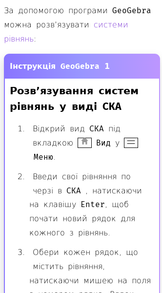 Стаття про Як розв’язувати системи рівнянь у GeoGebra
