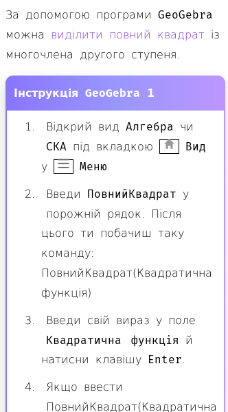 Стаття про Виділиння повного квадрата за допомогою GeoGebra
