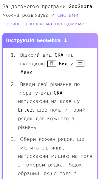 • Як розв'язувати системи рівнянь з кількома невідомими в GeoGebra