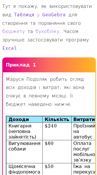 • Електронні таблиці для бюджету та бухобліку в GeoGebra