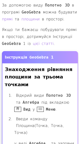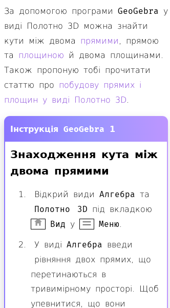 • Знаходження кутів між об'єктами у просторі за допомогою GeoGebra