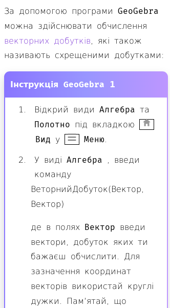 Стаття про Як обчислити векторні добутки за допомогою GeoGebra