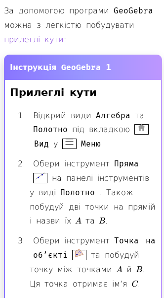 Стаття про Як побудувати суміжні кути в GeoGebra