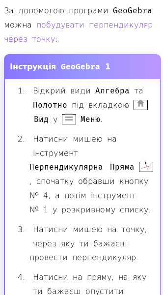 • Побудува перпендикуляра від точки до прямої в GeoGebra