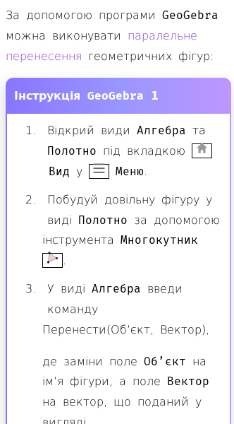 Стаття про Паралельне перенесення фігур у GeoGebra