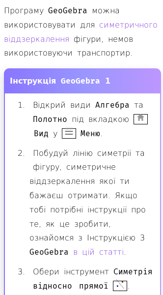 Стаття про Як виконувати симетричне віддзеркалення в GeoGebra
