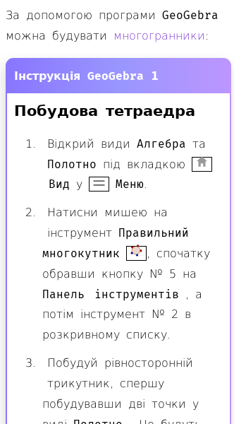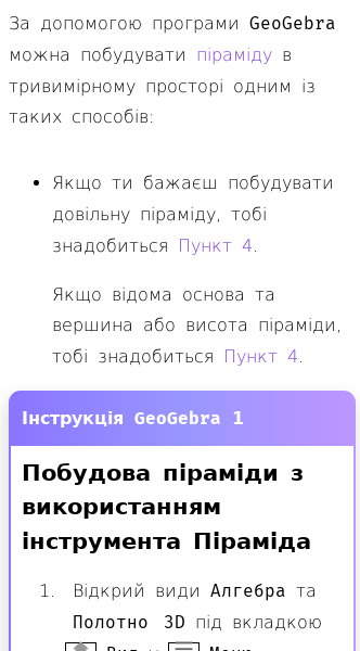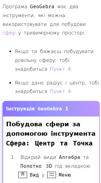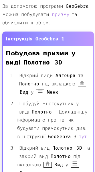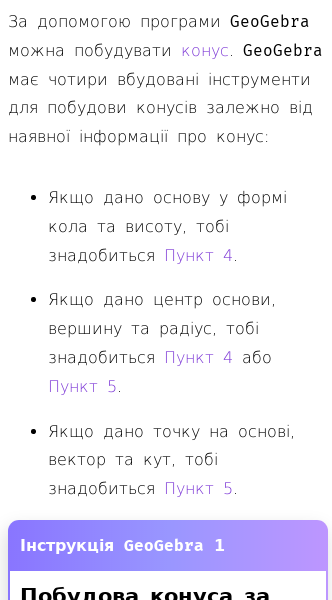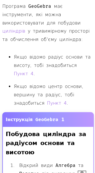 • Обчислення площі поверхні та об’єму фігур у тривимірному просторі в GeoGebra