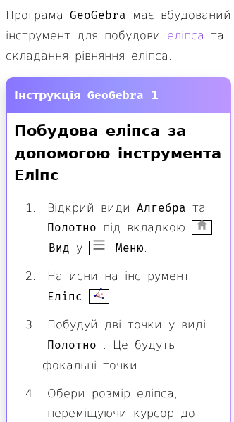 Стаття про Як побудувати еліпс за допомогою GeoGebra