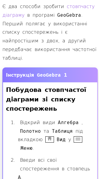 Стаття про Як створити стовпчасту таблицю в GeoGebra