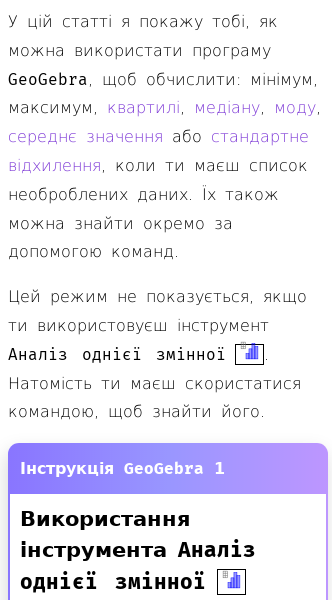 Стаття про Як створити коробчасту діаграму в GeoGebra